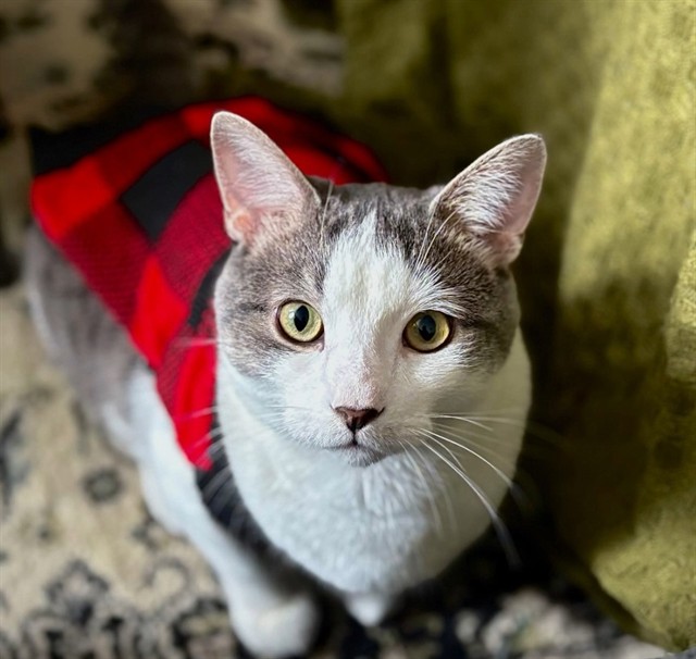 From my foster volunteer: "If you could combine the sweetness and curiosity of a cat and the loyalty and playfulness of a dog, you would have Freezy. He always wants to be a part of everything, especially our conversations! Freezy is so content to cuddle up with you and watch the world go by, or chase his favourite pompoms. He would not only fit in well with any household, but he is the kind of cat that would add to it."