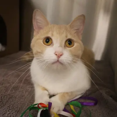 The staff at the OHS call me a Star! Stars tend to be self-starters and like to spend part of their day on independent activities, like exploring every nook and cranny of your home! They also enjoy time with their family, but usually on their own terms. Their favourite family activities may include playing with engaging toys, participating in fun training games, or curling up for a nap somewhere close by. Stars are usually pretty resourceful and like to figure out how things work, so they benefit from places to explore and perches near windows. Stars may also be good candidates for harness training and leash walks outdoors! If you're looking for an entertainer with loads of personality, a Star might just be the purrfect match for you!