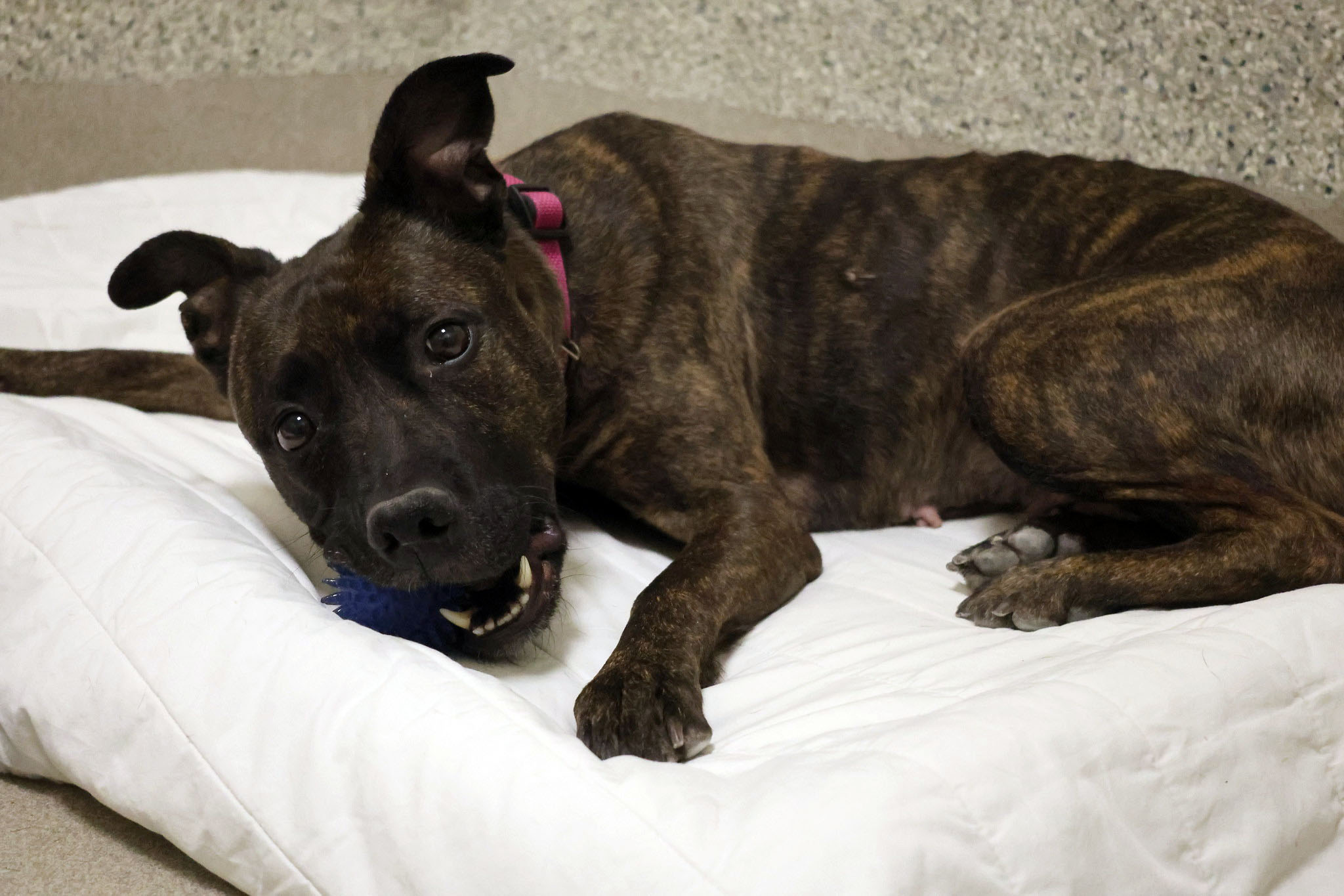 We assess behaviour by reviewing a dog’s previous history where it is known, as well as by evaluating how it behaves in the shelter with people, other dogs, and in different situations. While many dogs need little behaviour support beyond the regular daily enrichment we provide, others take part in one of our extensive behaviour intervention programs to help them become more adoptable. Some dogs are unsafe to place in our community, despite any efforts we may take.