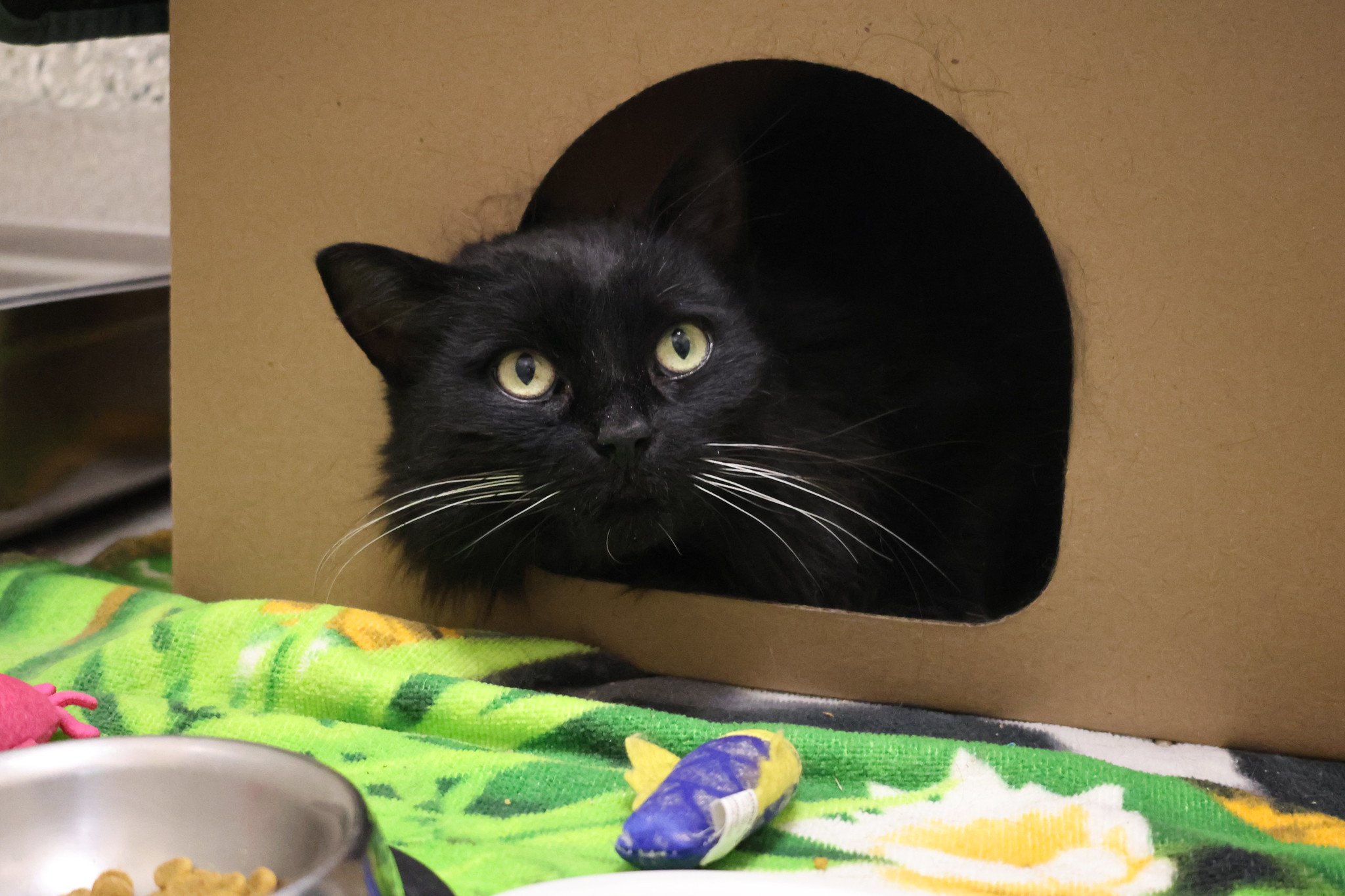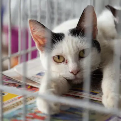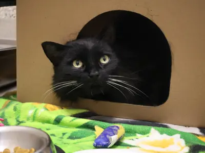 Amara, a nine-year-old cat, came to the OHS after being found lost and alone, showing signs of fear and stress. Understanding her need for patience and a gentle approach, our intervention services team created a customized care plan for Amara. This included extra enrichment and socialization with our dedicated feline volunteers to help her feel safe and rebuild her confidence.